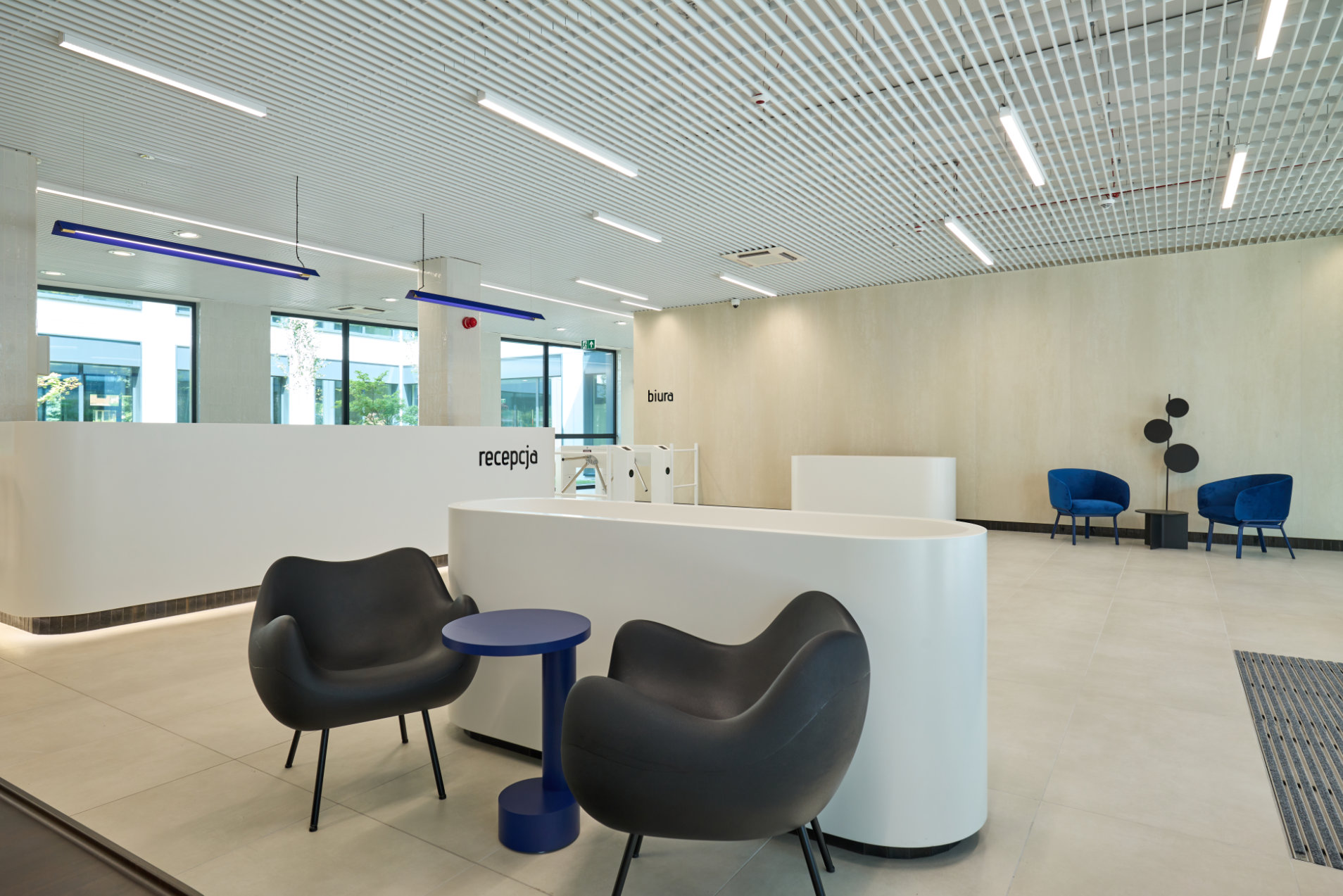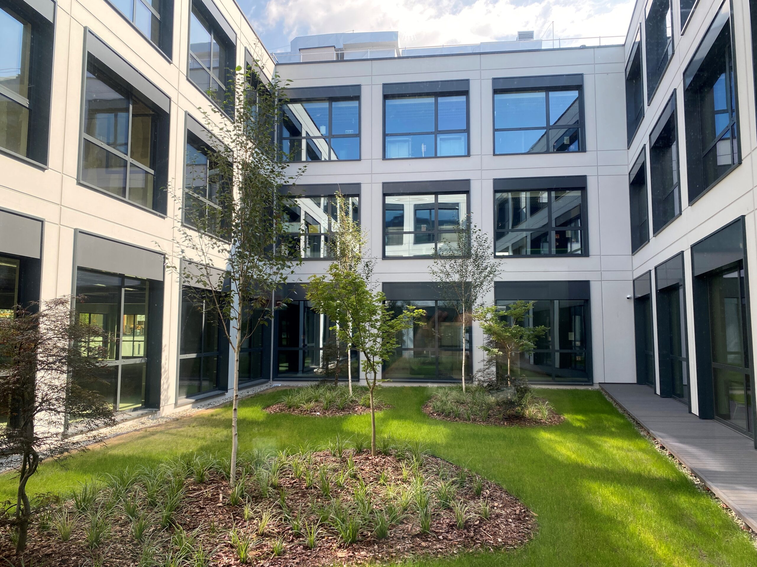 Dodatkowym atutem Urbi Ferro jest pięknie zagospodarowana zieleń z elementami małej architektury wokół budynku. Takie otoczenie to nie tylko komfort użytkowników i odwiedzających, ale także pozytywny wizerunek pracodawcy.